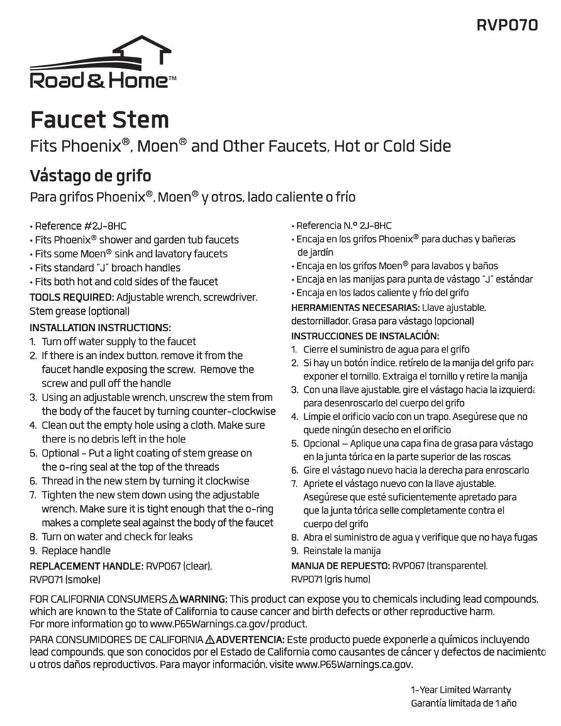 - Compatible with Phoenix®, Moen® and standard J broach handle faucets