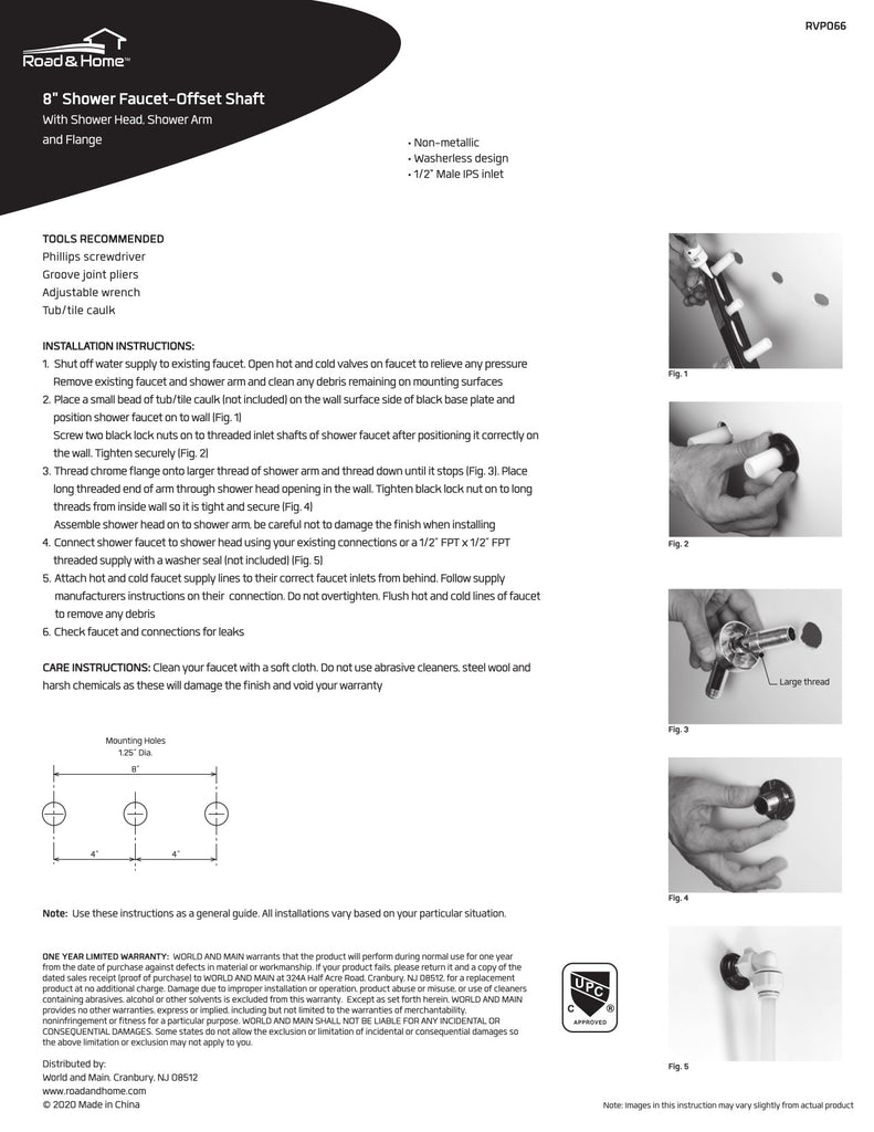 - Use the in-line version of this product, RVP63, for an in-line shower water supply (sold separately)