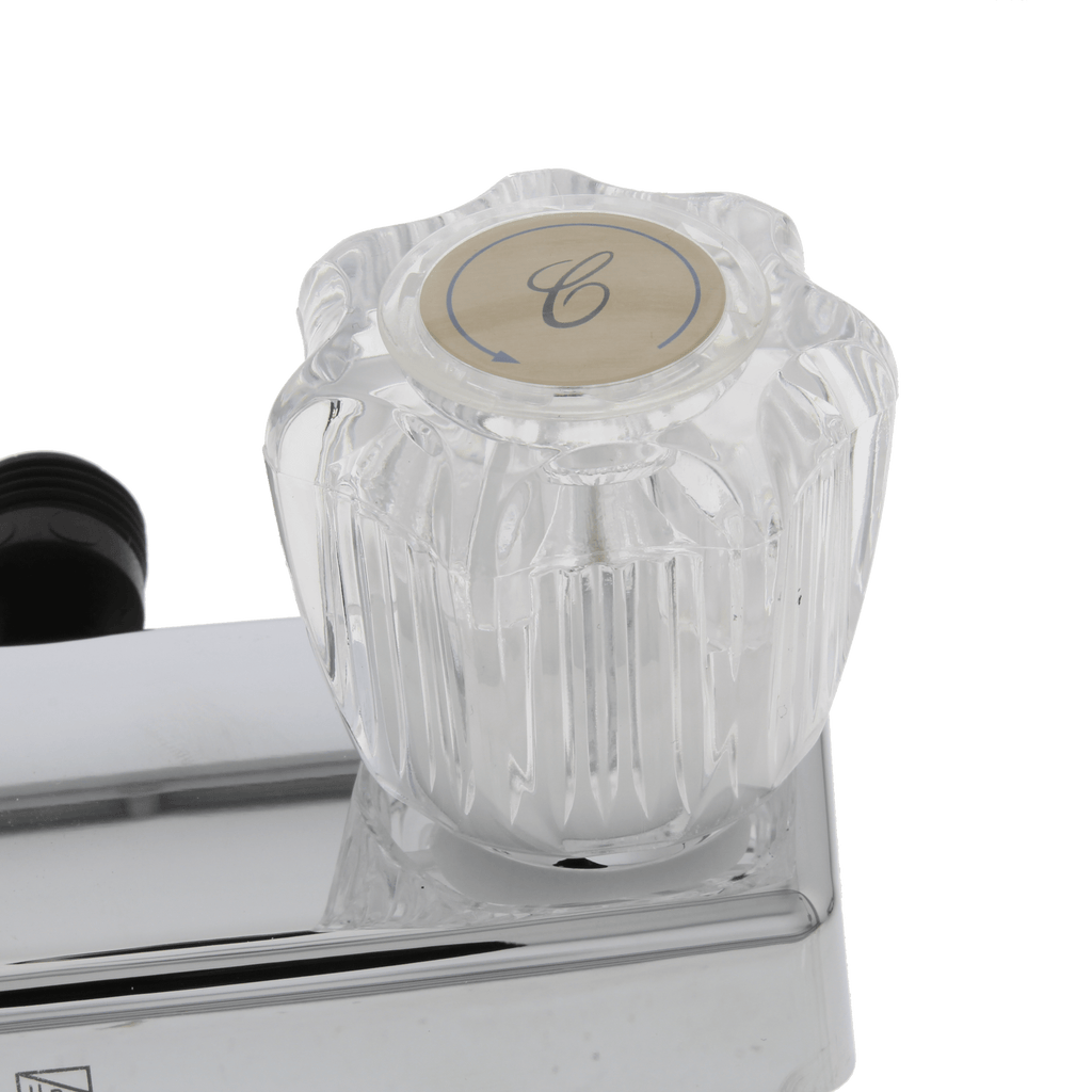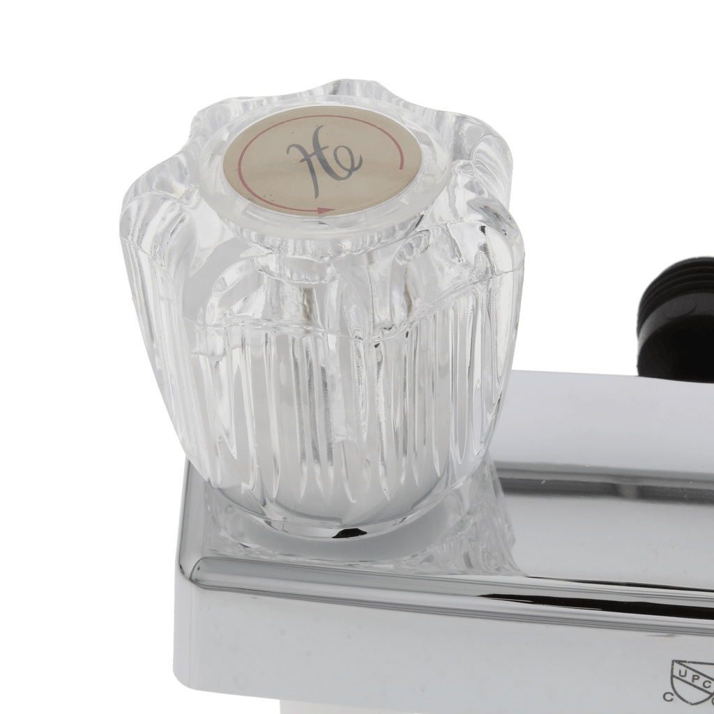 When you hit the road in your recreational vehicle, you depend on your shower to you keep clean. If your vehicle's 4 in. shower faucet requires a competent replacement or is need of an upgrade, this faucet is a great option. Featuring an exposed hand-shower outlet, the faucet is designed to fit securely and integrate seamlessly with a variety of shower and water systems. Made with quality components and a smart design, the faucet is built to last. It also installs quickly with few tools or modifications. The Road & Home 4 in. Faucet features a valve that is surface mounted, so it sits securely on the wall of the shower in your RV.