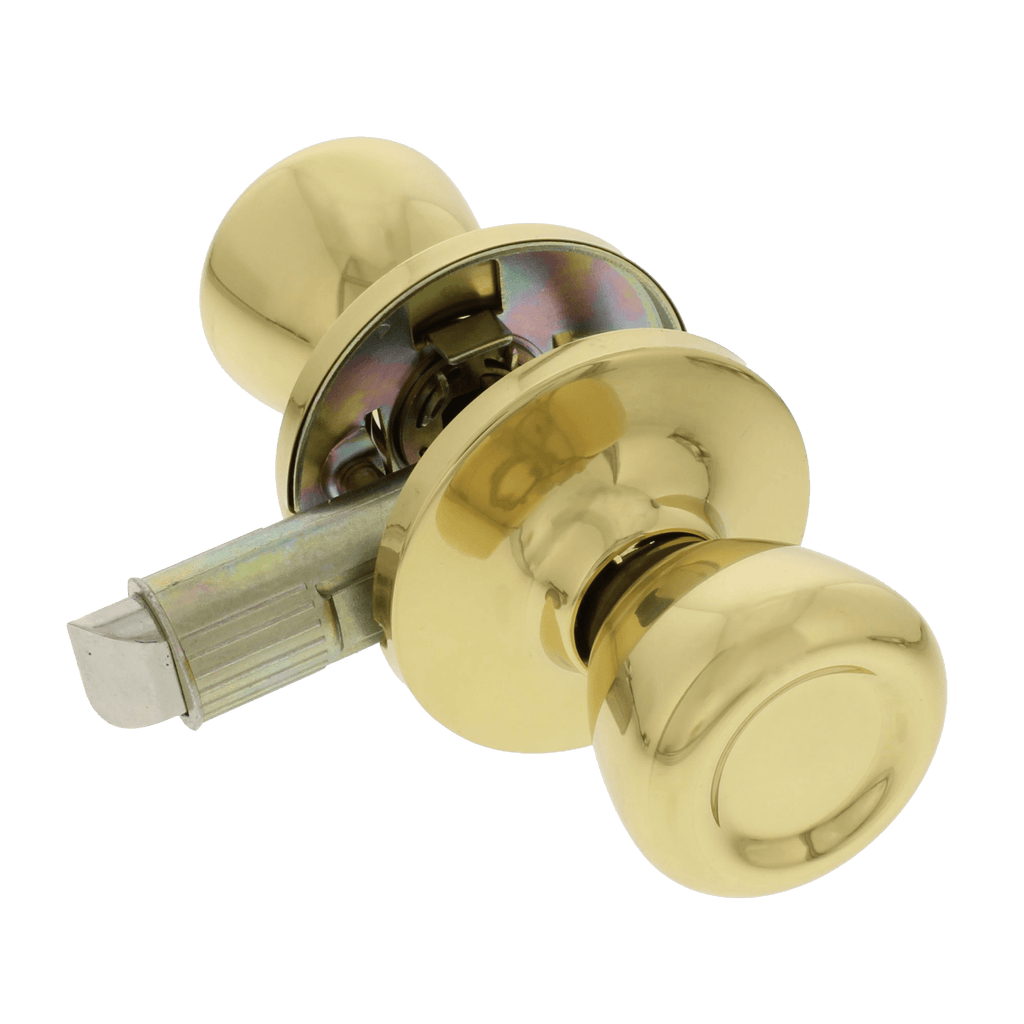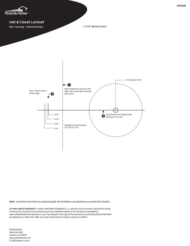Replace your broken hallway or closet door lock with a Road & Home replacement lockset, specifically designed for use on mobile home interior passage doors. The passage lock can be used on doors between 1-3/8 in. and 1-3/4 in. in thickness and includes a 2-3/8 in. drive-in backset latch that will fit most pre-existing door holes, which means there is no need to bore new holes. This product comes in a polished brass finish.