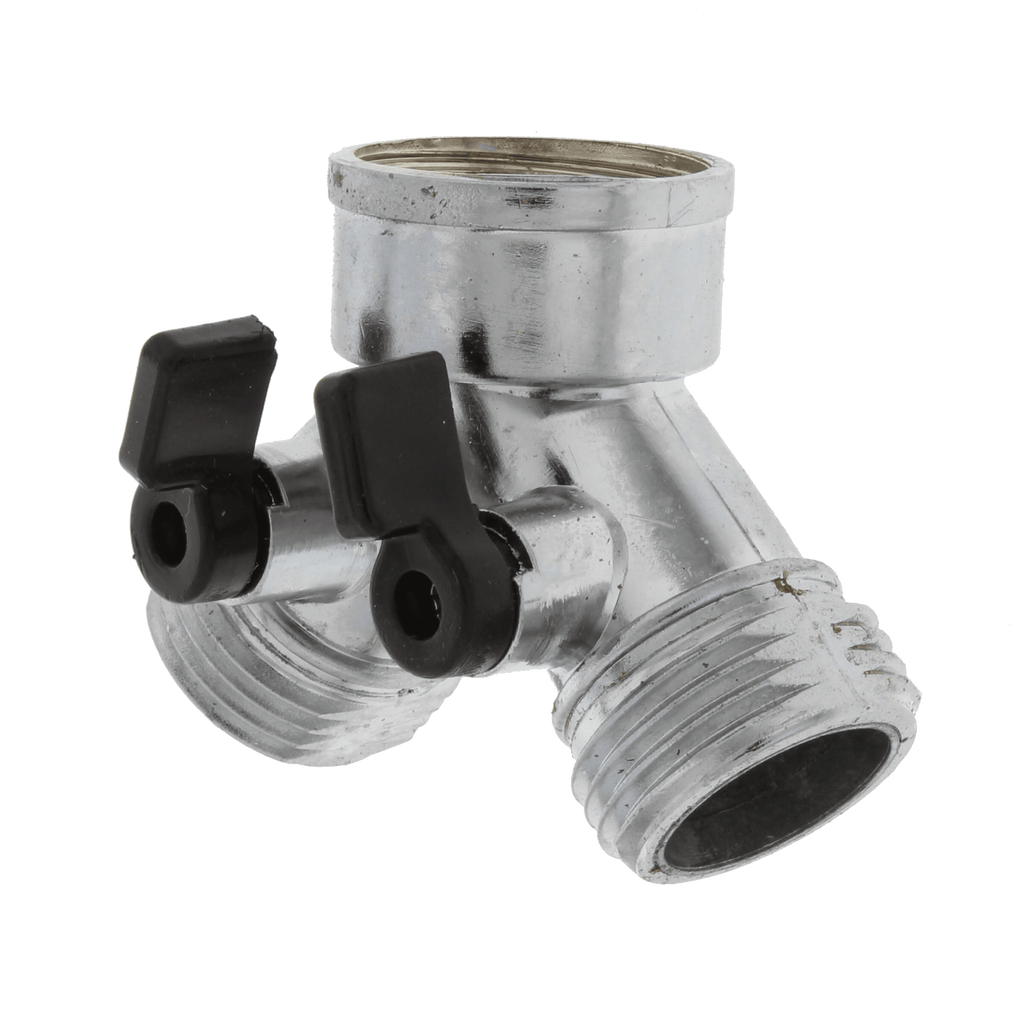Use this metal hose dual shut-off Y to split a standard hose fixture into two independently controlled streams. Easily open or close the flow of water on either side using the twin shut-off valves. These durable valves double the functionality of your existing hose hookup for any number of potential applications. Are you tired of screwing and unscrewing hoses constantly throughout the duration of your stay at a campsite? Simply attach the park's water supply to one side of the adapter and your outlet to the other. You are free to access your external water source and refill your tank quickly and efficiently. Use it for all of your outdoor water needs around your RV and mobile home.